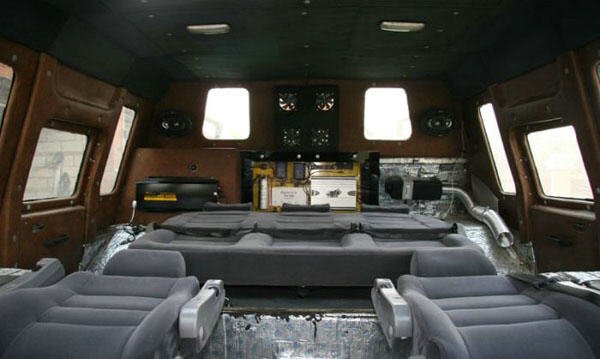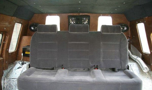 11. Викинули все старые сиденья и поставили новые полностью раскладывающиеся сиденья и диван. Водителю и штурману - сидения от "Крайслер"