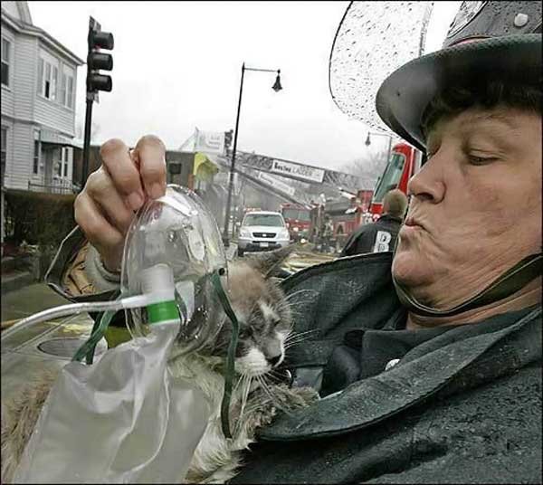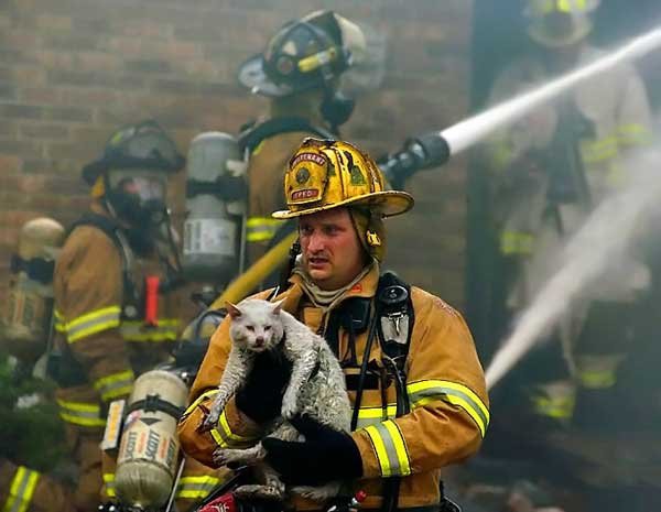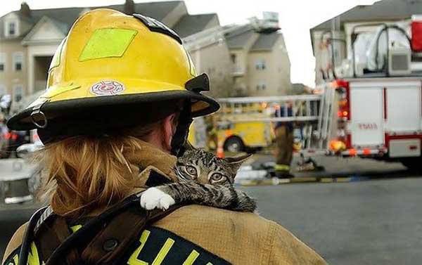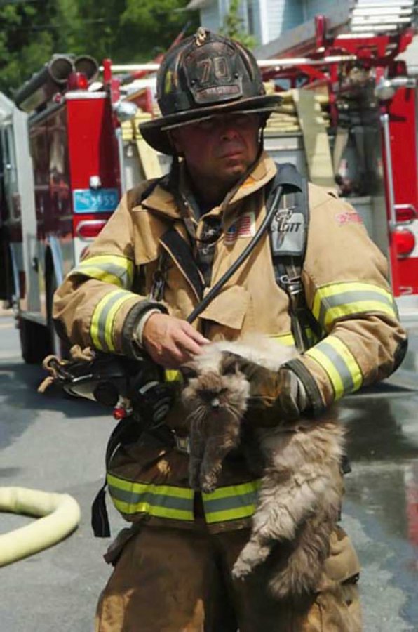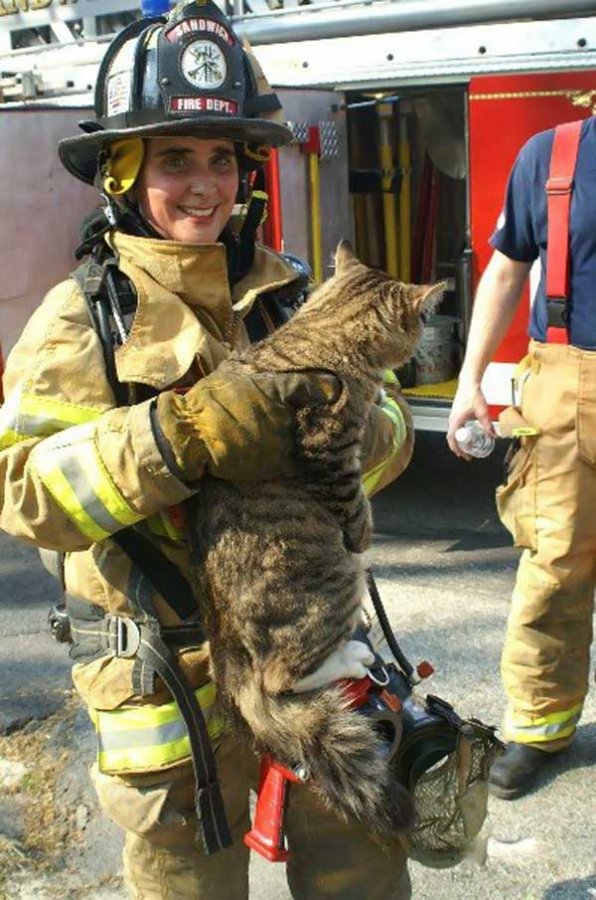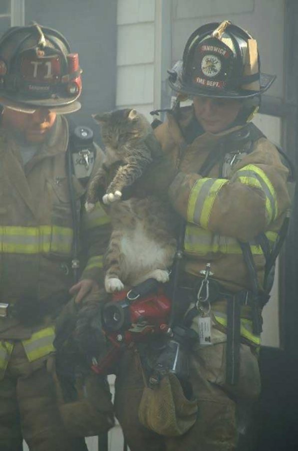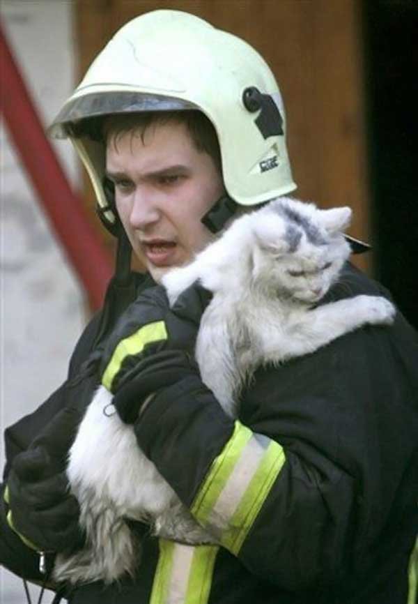 Кого только не спасают пожарники бывают и очень милые, пушистые пострадавшие.