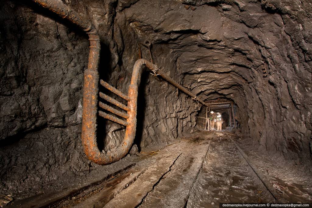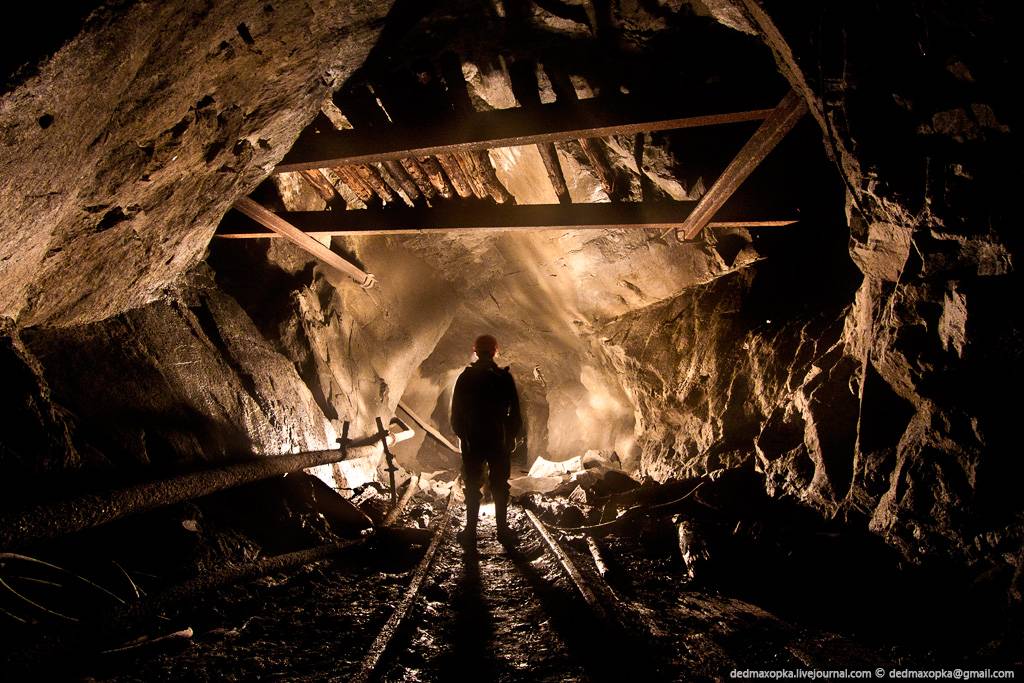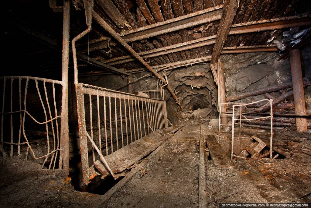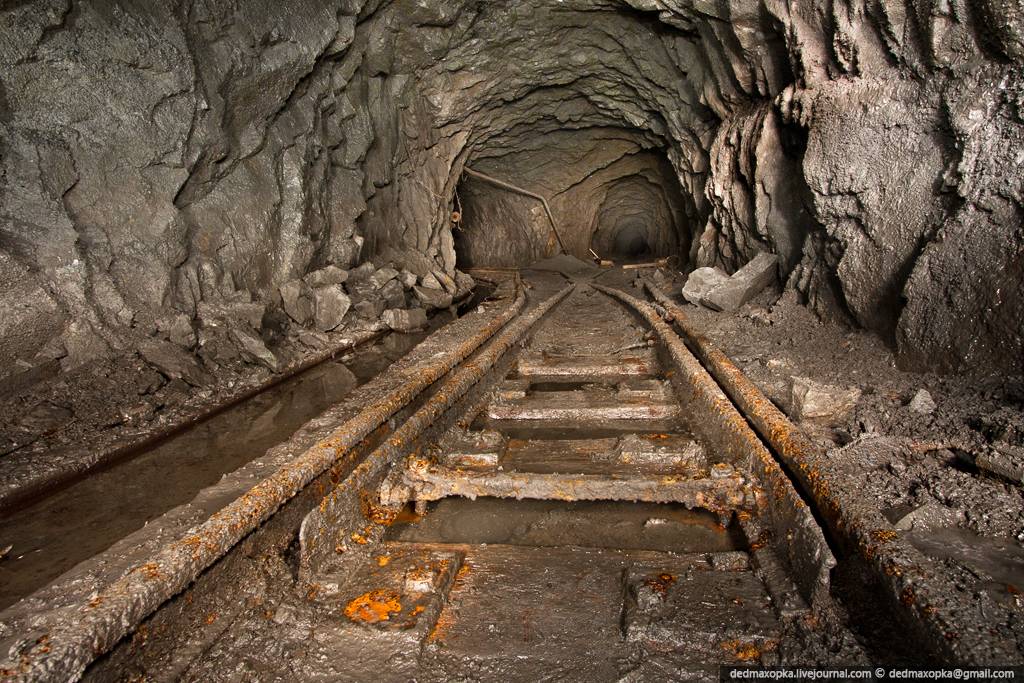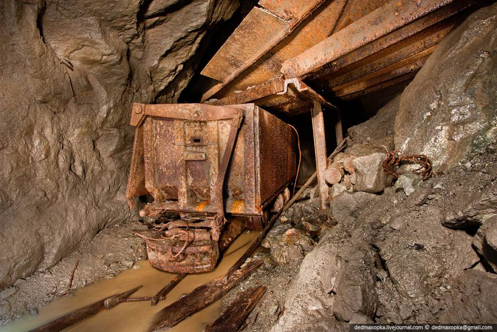 Буквально сразу стало понятно, что шахта в плохом состоянии. Слишком много обвалов, рельсы ржавые, деревянные опоры готовы вот-вот рухнуть, стоит только их задеть. Пробираясь через камни, мы шли дальше.